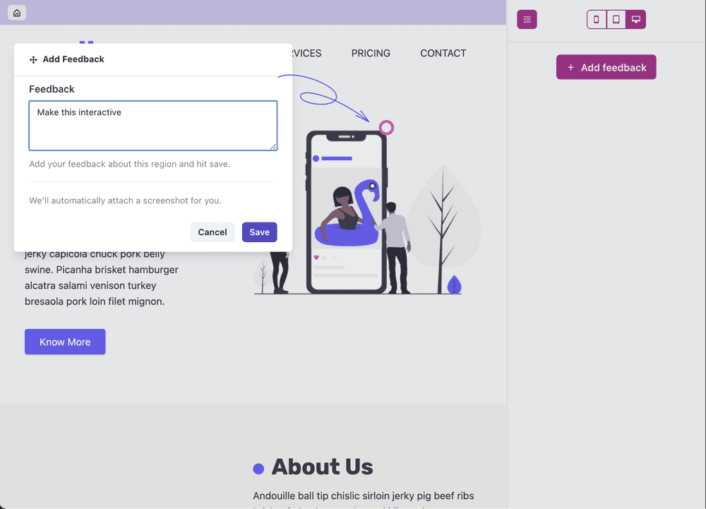 Get feedback & annotations from your team or client, directly on the website.