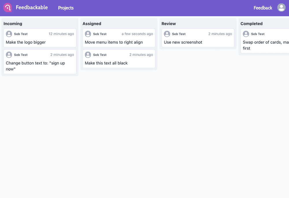 All your feedback and bug reports in one place. Stop chasing emails, scribbled notes, text documents for the right feedback or piece of copy. Organise all your feedback in one board. *Coming soon: integrations!